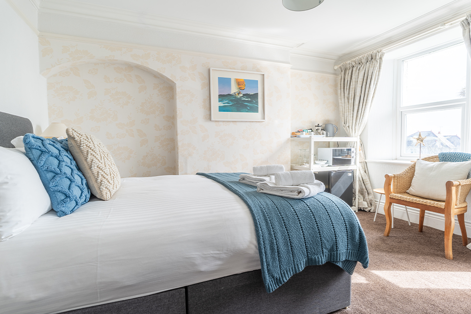 RoomsThe Egryn has 8 en-suite bedrooms, all luxuriously appointed with courtesy trays (tea/coffee/hot chocolate, biscuits), fridge, microwave, colour TV/DVD and hairdryer. Most of our rooms have wonderful sea or mountain views. All are offered on a Room Only basis. We do not offer a breakfast service although our rooms are equipped such that you can breakfast in the comfort of your own room or try one of the many breakfast/brunch eateries within easy walking distance of Abersoch village and its surrounds. We have a range of double (single occupancy available), twin, triple and family rooms available. The Egryn offers WiFi connectivity at no charge. Please note that whilst we are unable to accommodate pets in the rooms we are very happy to welcome pets in the Egryn Bach Suite which has the benefit of a small private garden. To check availability or book please either call us on 07918 132003 or if you prefer then book online here Please see the photo gallery if you'd like a preview of our rooms and gardens. If you'd like to know what our customers say about the Egryn then please click here |